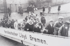 ブレーメンで客船のタラップを昇るキーン少年と父